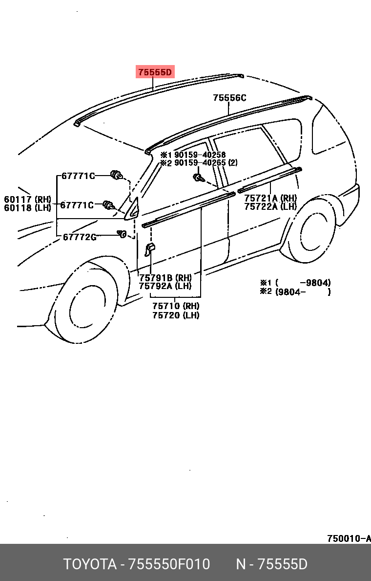 75555-0F010 TOYOTA Молдинг кpыши