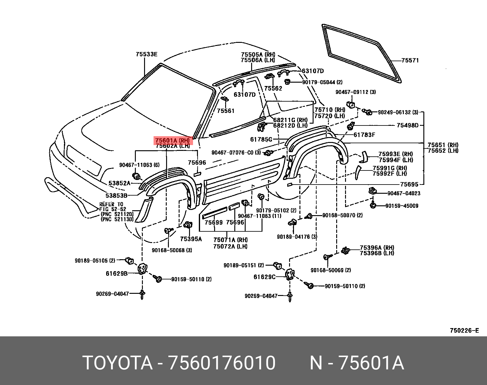 | Наименование | 7560176010 молдинг переднего крыла правый! в сборе\ Toyota |
