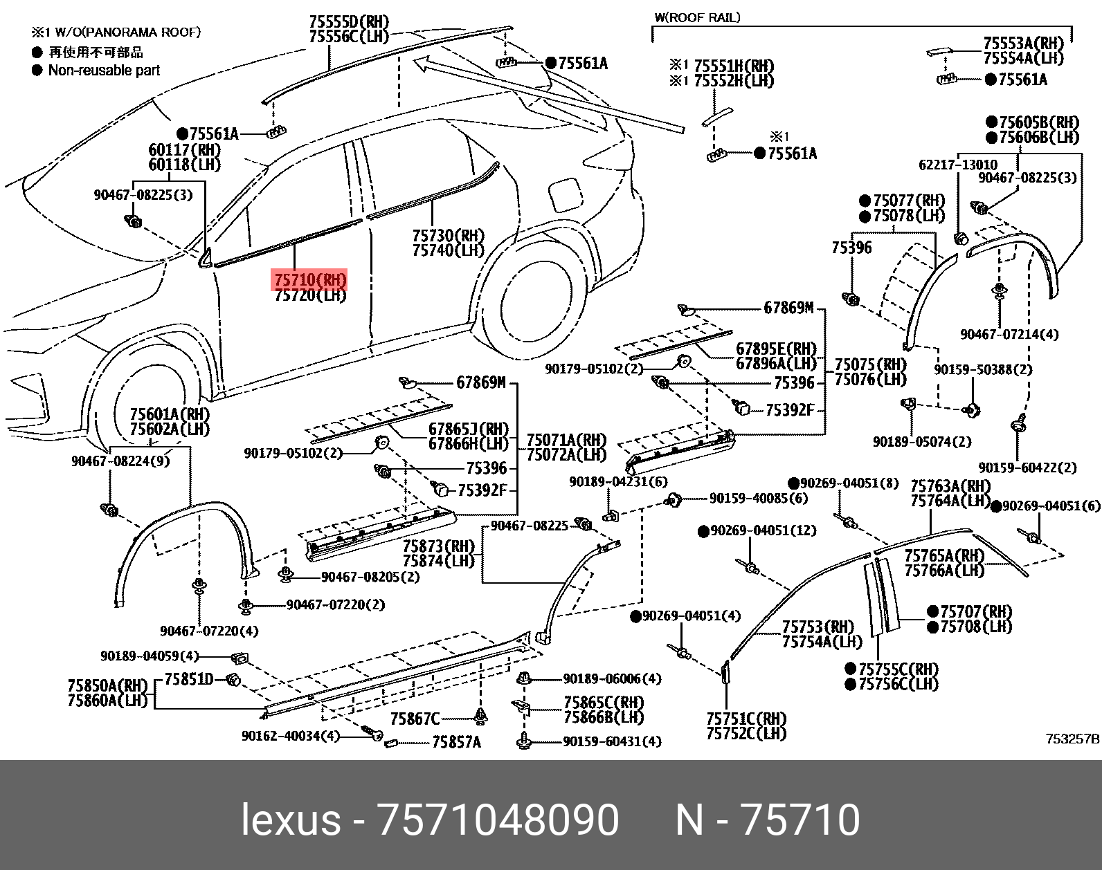 75710-48090 TOYOTA OETOY-7571048090 молдинг передней правой двери! в сборе\ Toyota