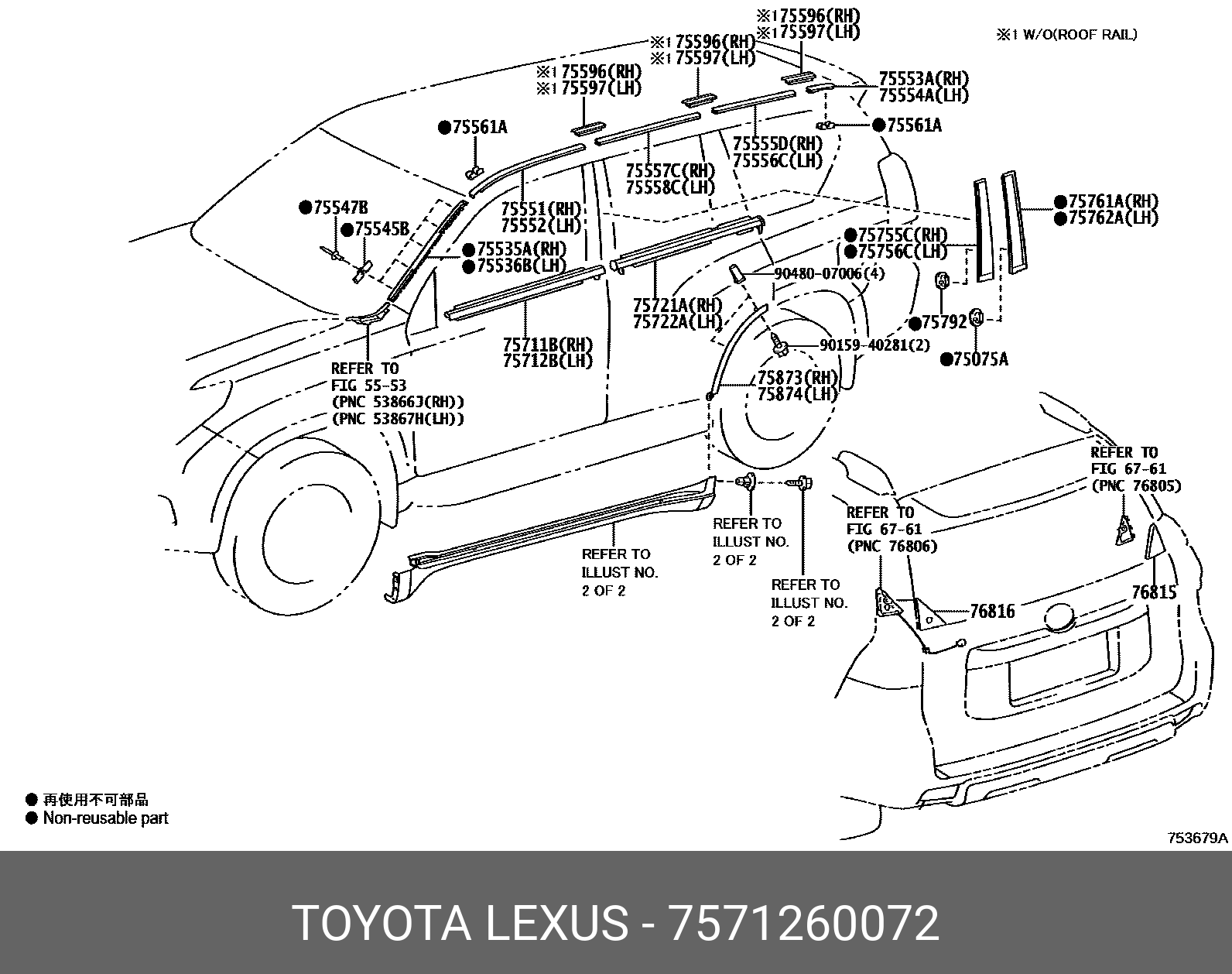 7571260072 TOYOTA OETOY-75712-60072 молдинг двери передней левой!\ Toyota Land Cruiser Prado 150