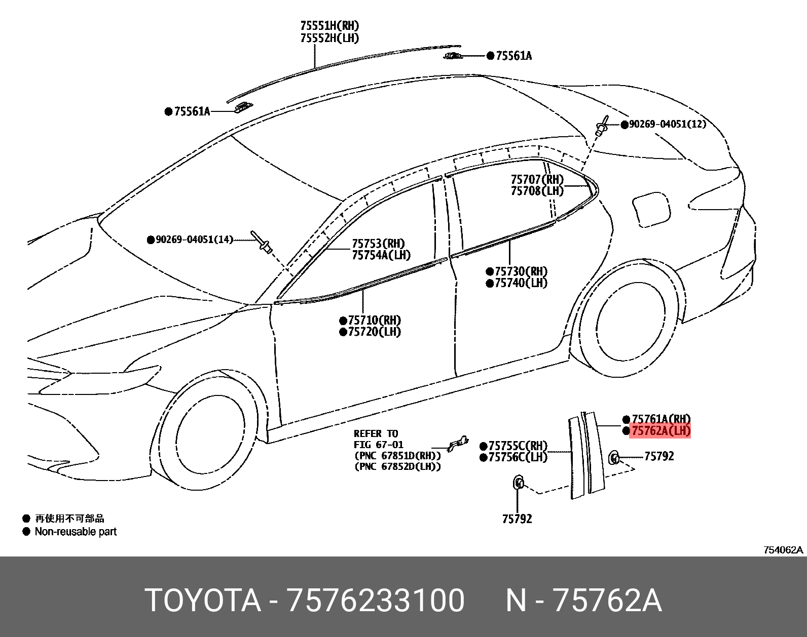 | Наименование | OETOY-7576233100 молдинг рамы окна задней двери передний левый!\ Toyota |
