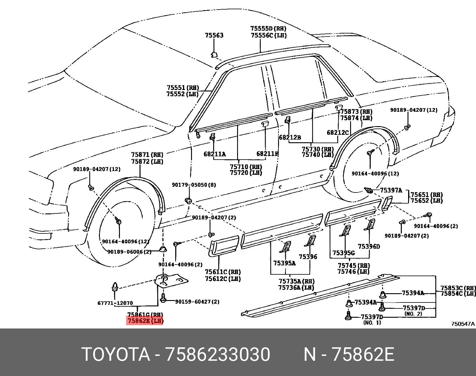 75862-33030 TOYOTA брызговик задний левый!\ Toyota Camry 10>