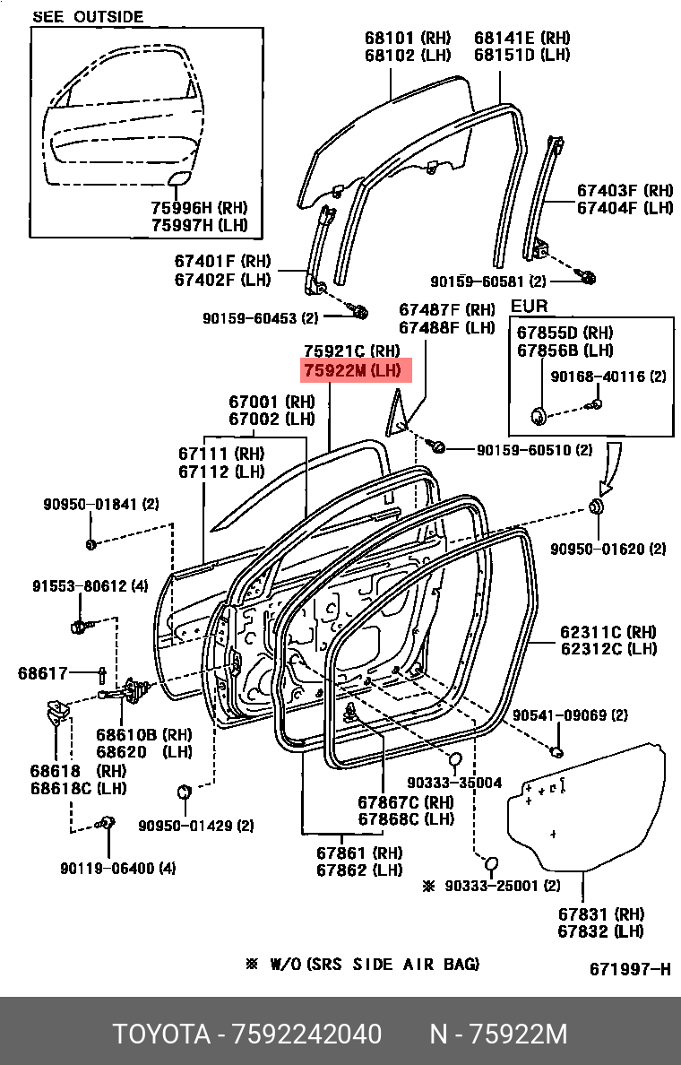 75922-42040 TOYOTA защитная наклейка на дверь!\ Toyota