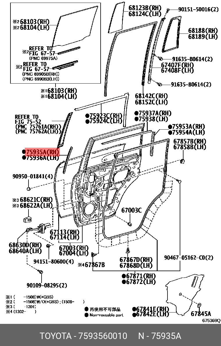 75935-60010 TOYOTA уплотнитель задней двери правой!\ Toyota