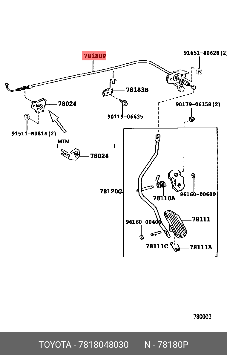 78180-48030 TOYOTA Трос газа в сборе 78180-48030