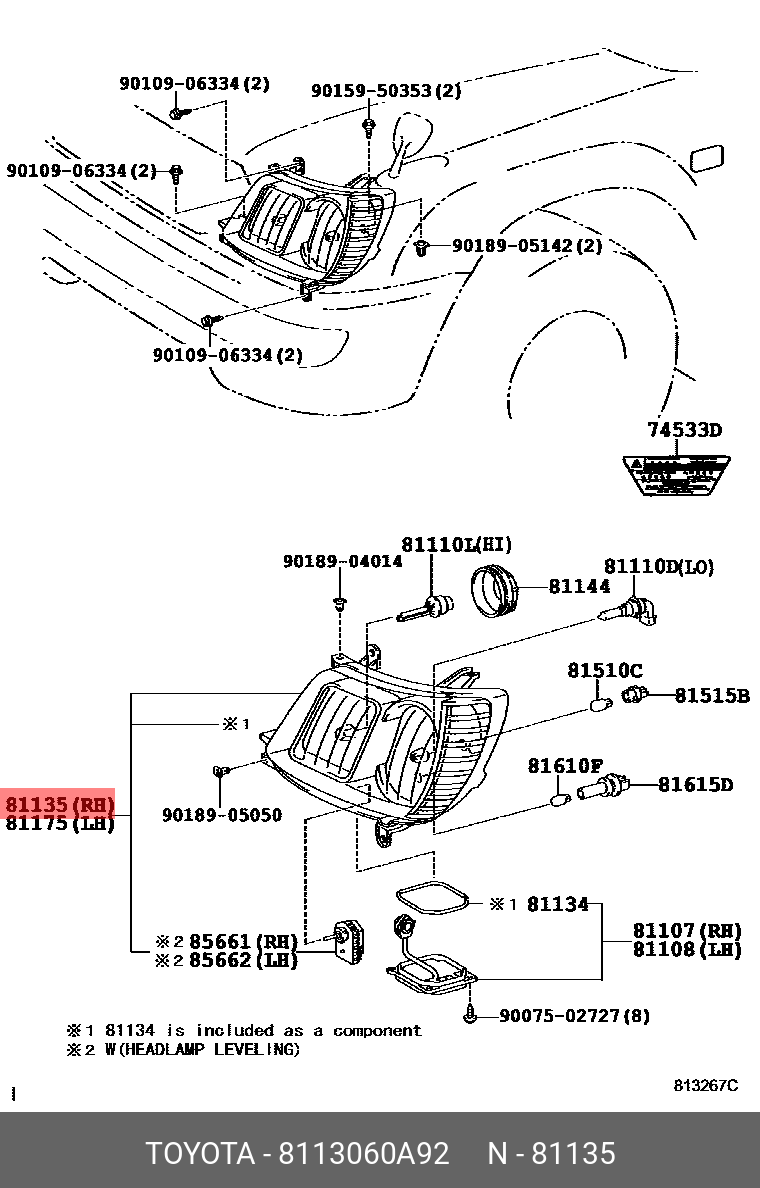 81130-60A92 TOYOTA Фара основная правая 81130-60A92