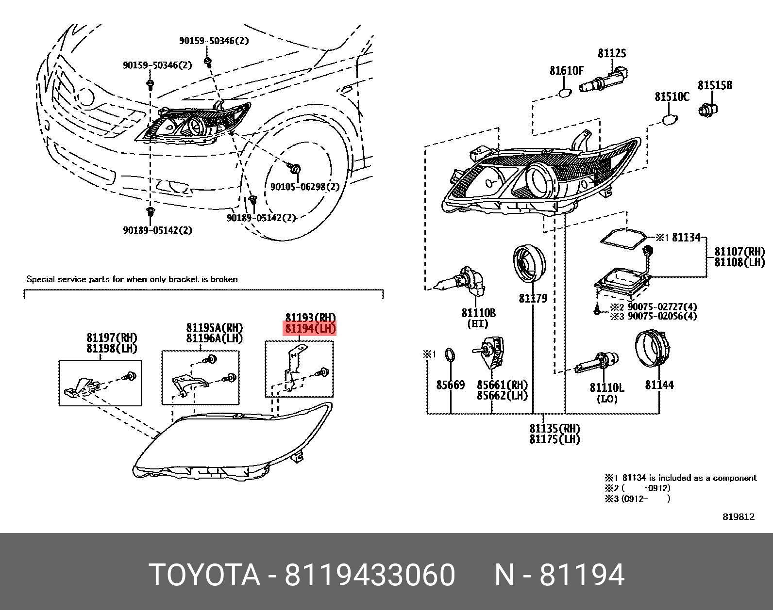 81194-33060 TOYOTA КРОНШТЕЙН КРЕПЛЕНИЯ ФАРЫ