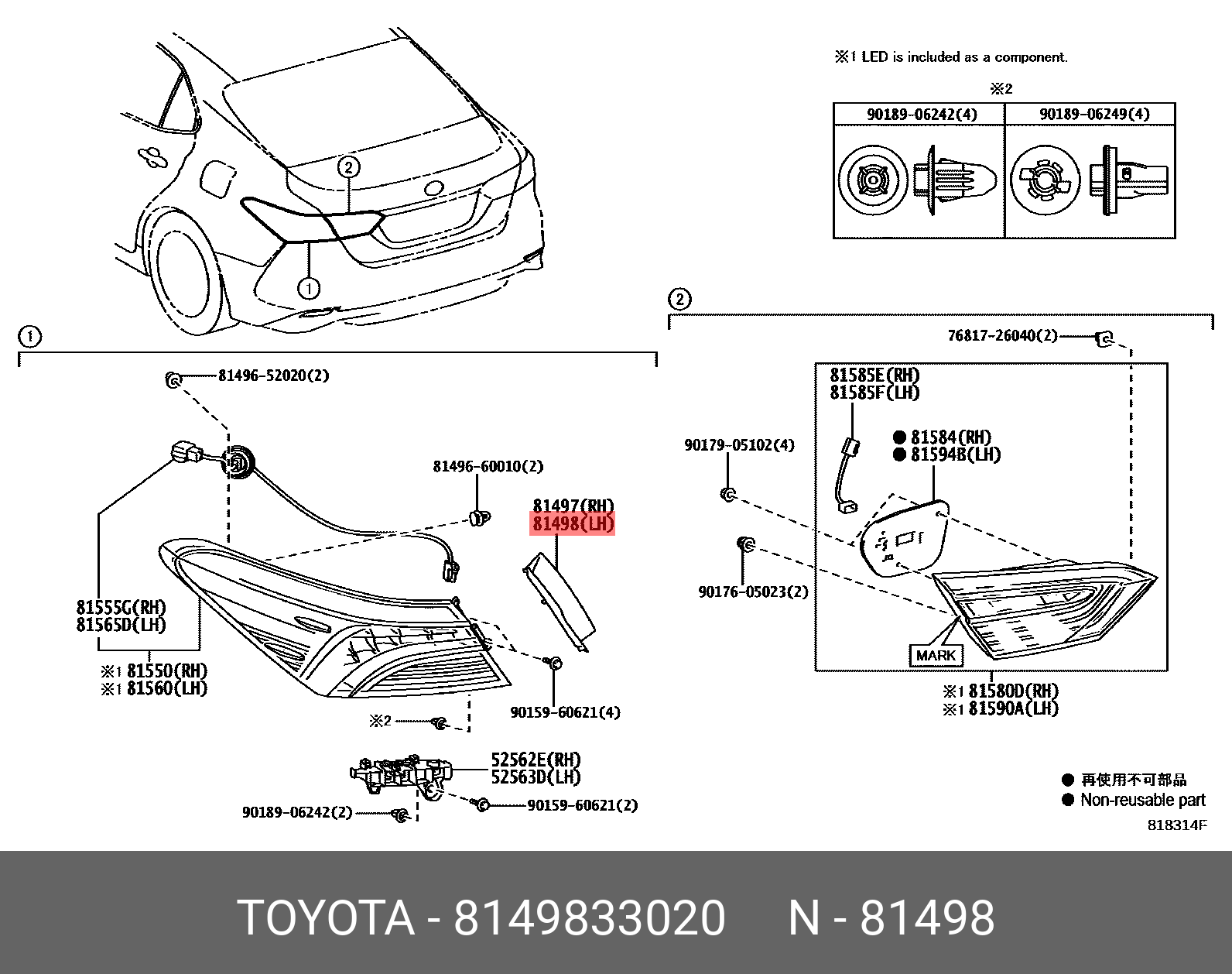 81498-33020 TOYOTA накладка фонаря комбинированного заднего левого!\ Toyota Camry