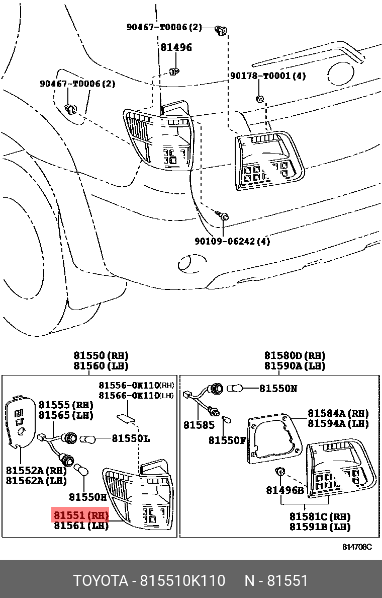 81551-0K110 TOYOTA ФОНАРЬ ЗАДНИЙ