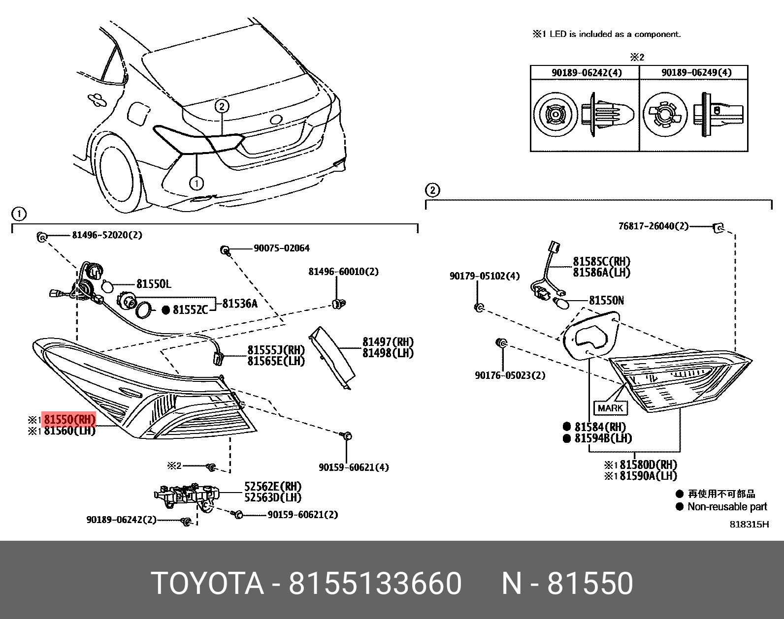 81551-33660 TOYOTA фонарь! правый\ Toyota