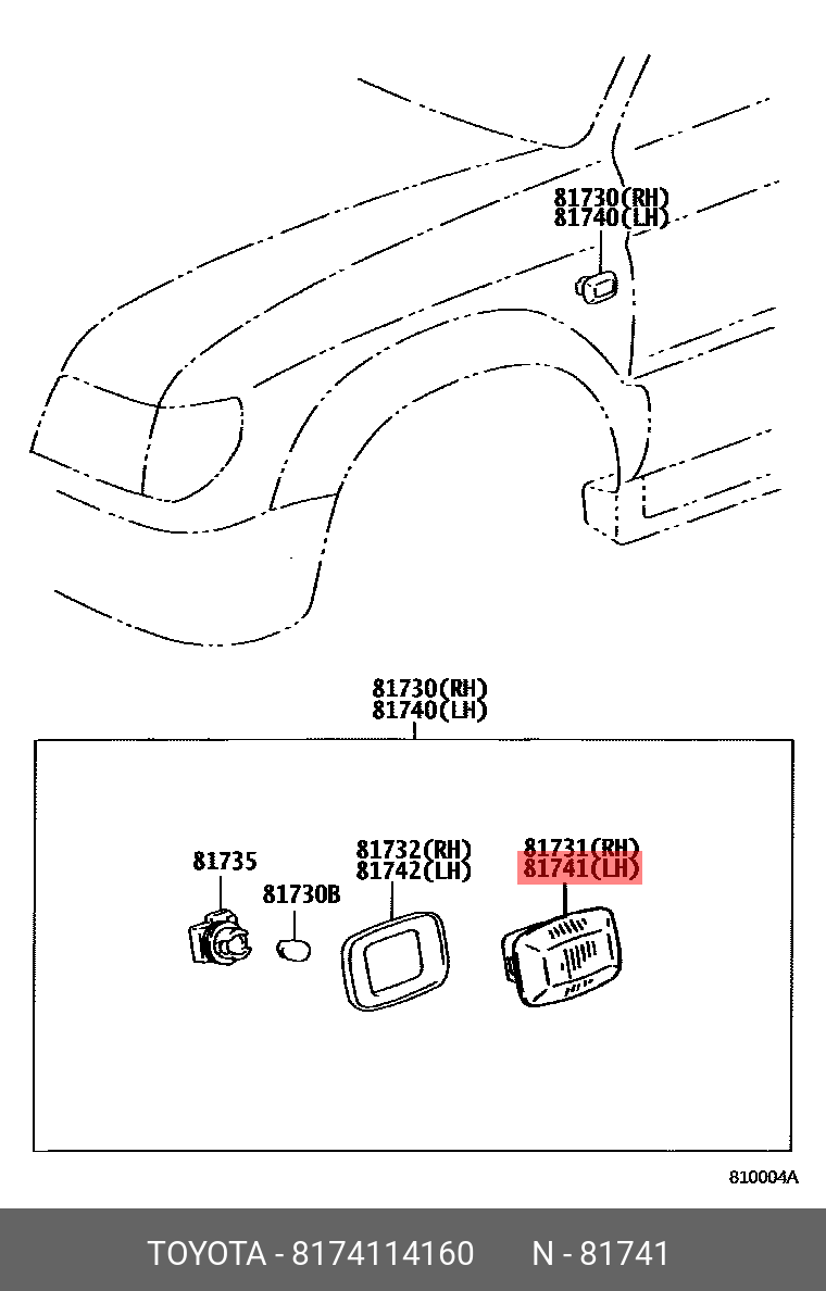 81741-14160 TOYOTA Повторитель указателя поворота передний левый 81741-14160