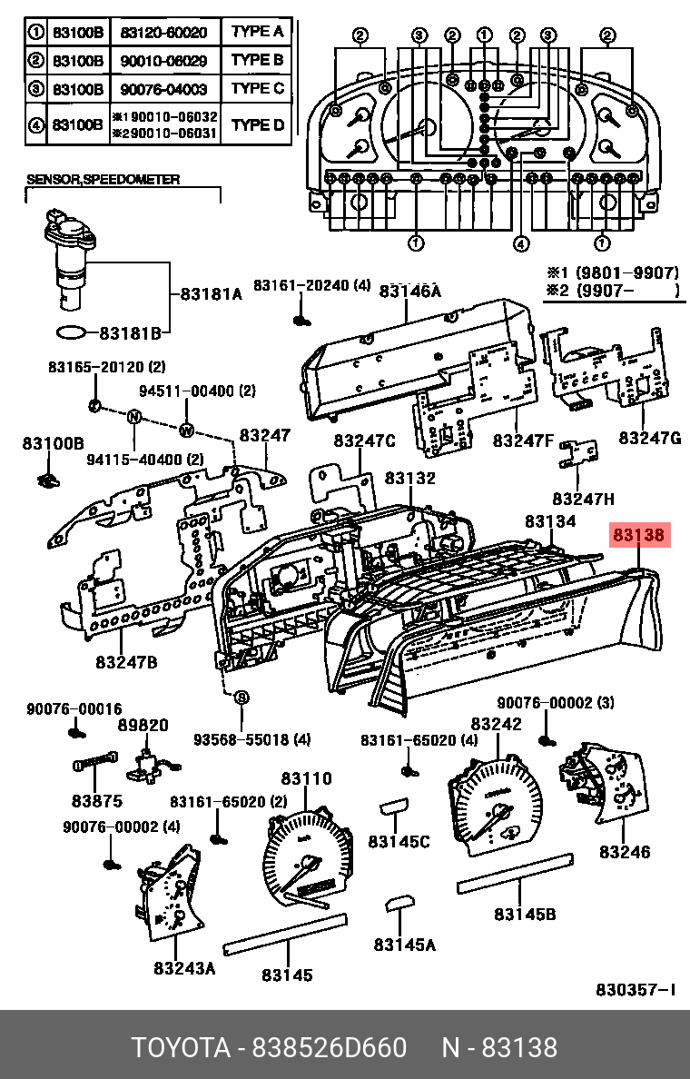 83852-6D660 TOYOTA стекло! панели приборов\ Toyota LX470 98-07/Land Cruiser 100