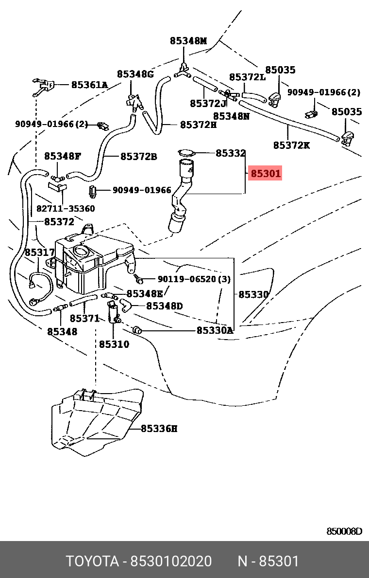 85301-02020 TOYOTA горловина бачка омывателя!\ Toyota Corolla E18 12>