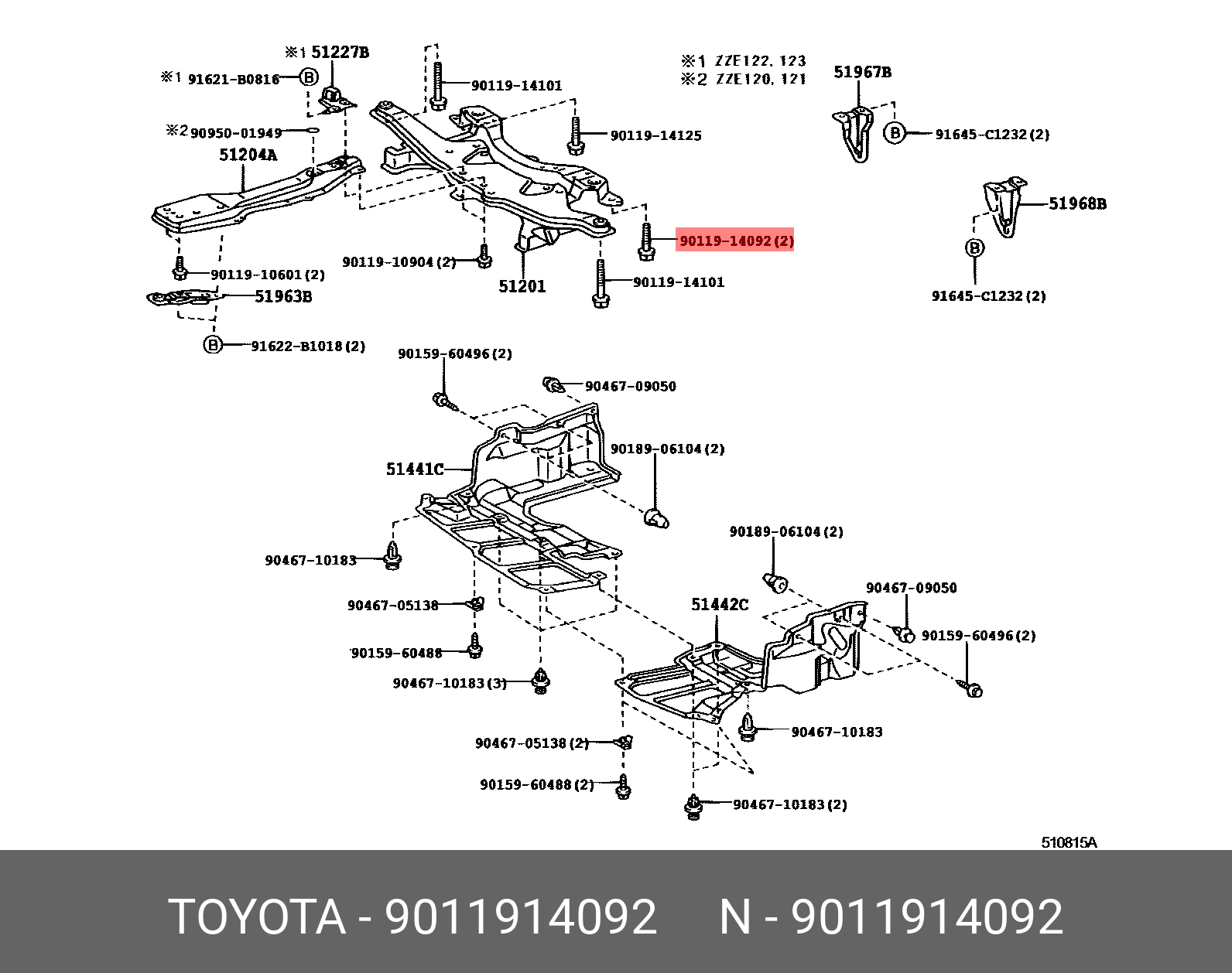 90119-14092 TOYOTA болт крепления подрамника!\ Toyota Corolla