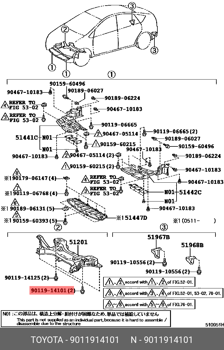 90119-14101 TOYOTA болт крепления подрамника!\ Toyota