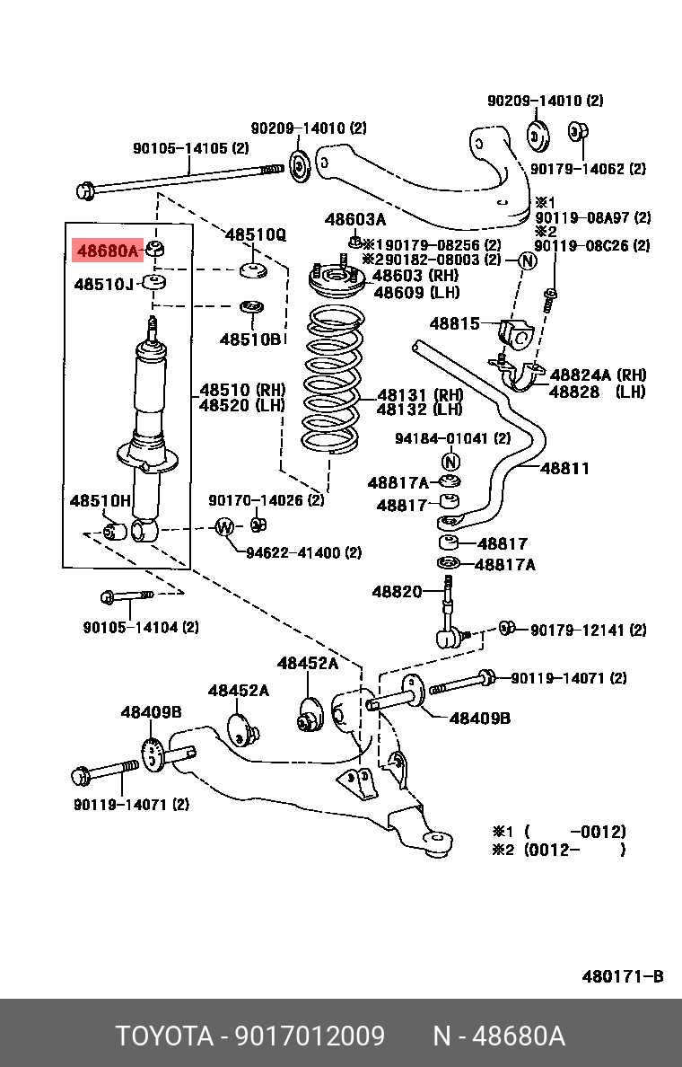 90170-12009 TOYOTA Гайка крепления TOYOTA CHASER 92-/ CRESTA 92-/ MARK 2 92- переднего амортизатора