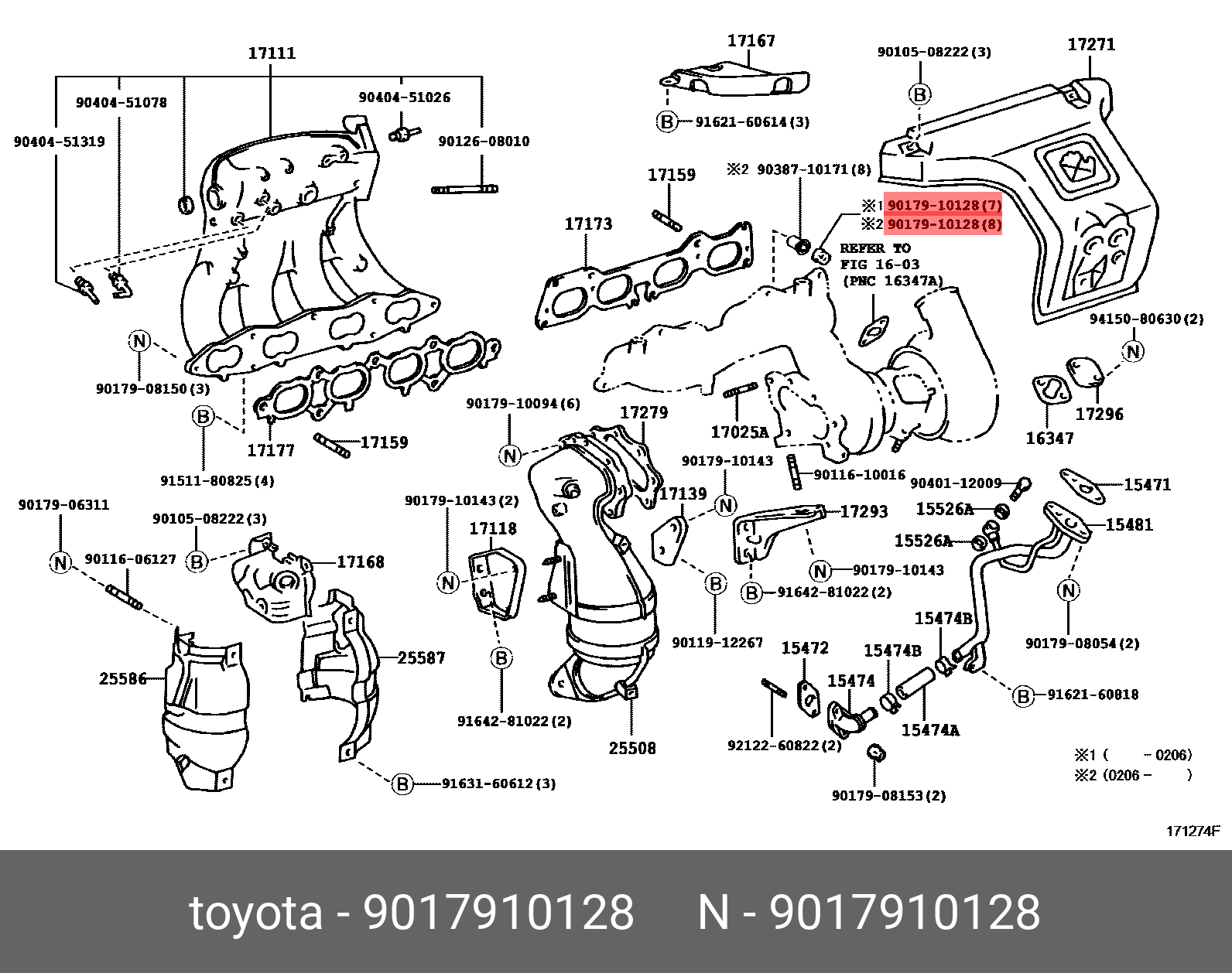 90179-10128 TOYOTA гайка шпильки крепления коллектора! М8\ Toyota Caldina