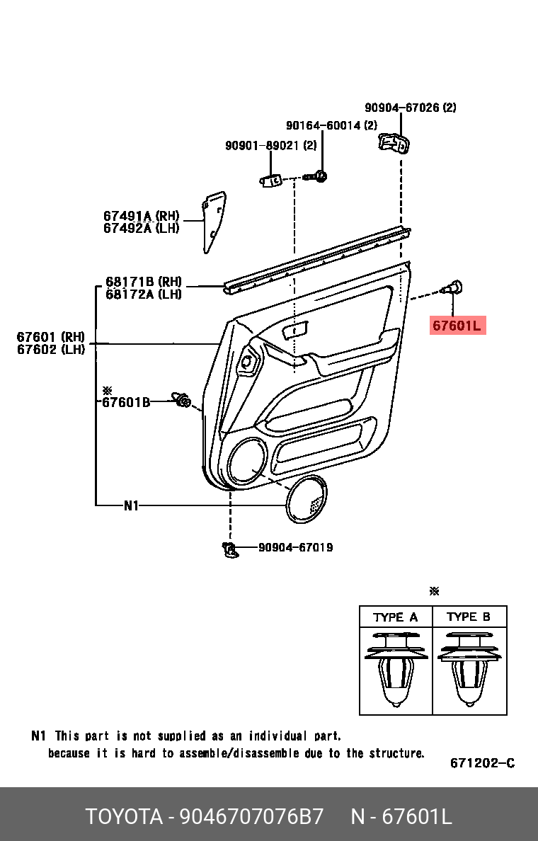 90467-07076-B7 TOYOTA клипса!\ Toyota Land Cruiser Prado