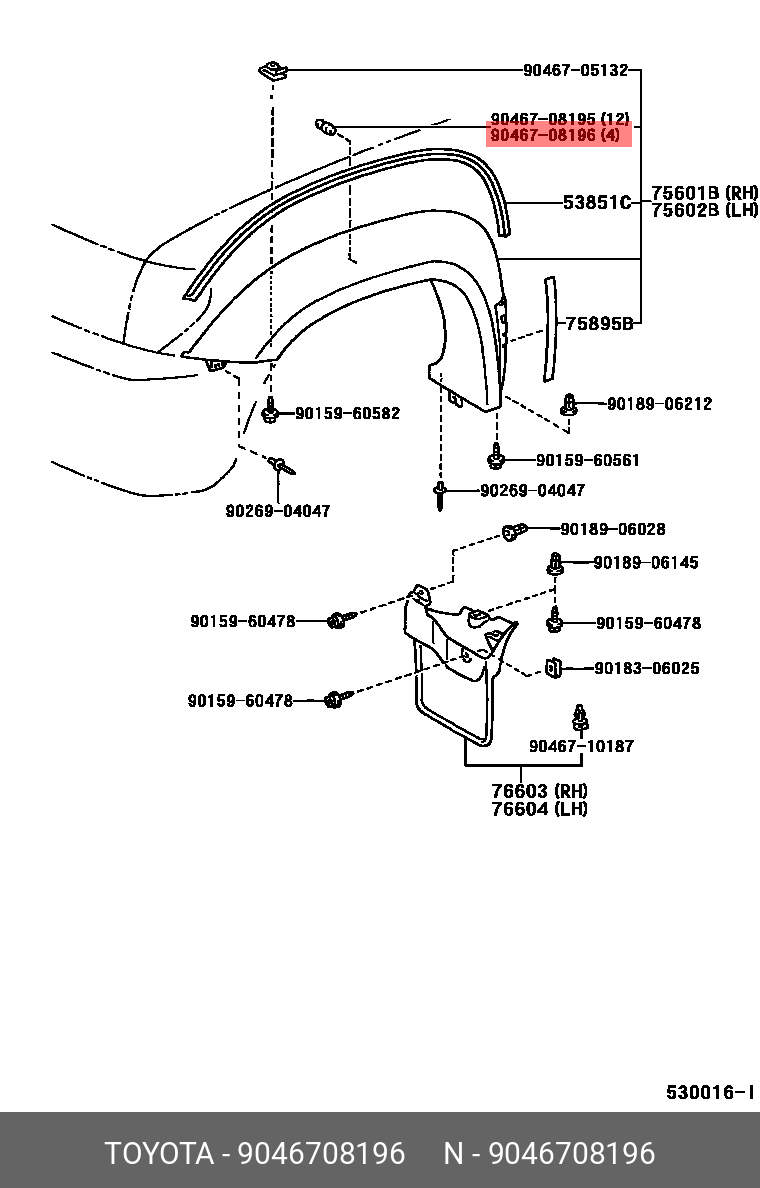 90467-08196 TOYOTA клипса молдинга арки!\Toyota