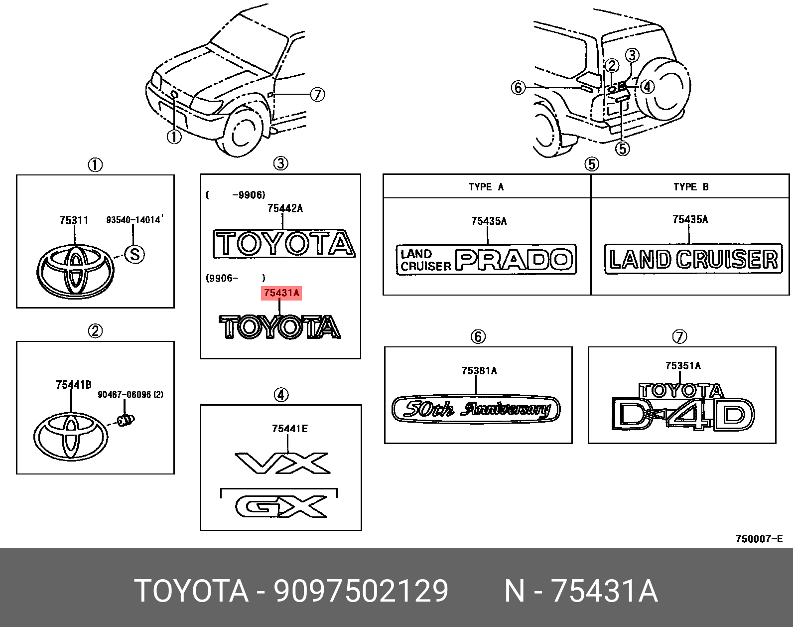 90975-02129 TOYOTA эмблема! на крышку багажника\ Toyota Land Cruiser 200 07-12