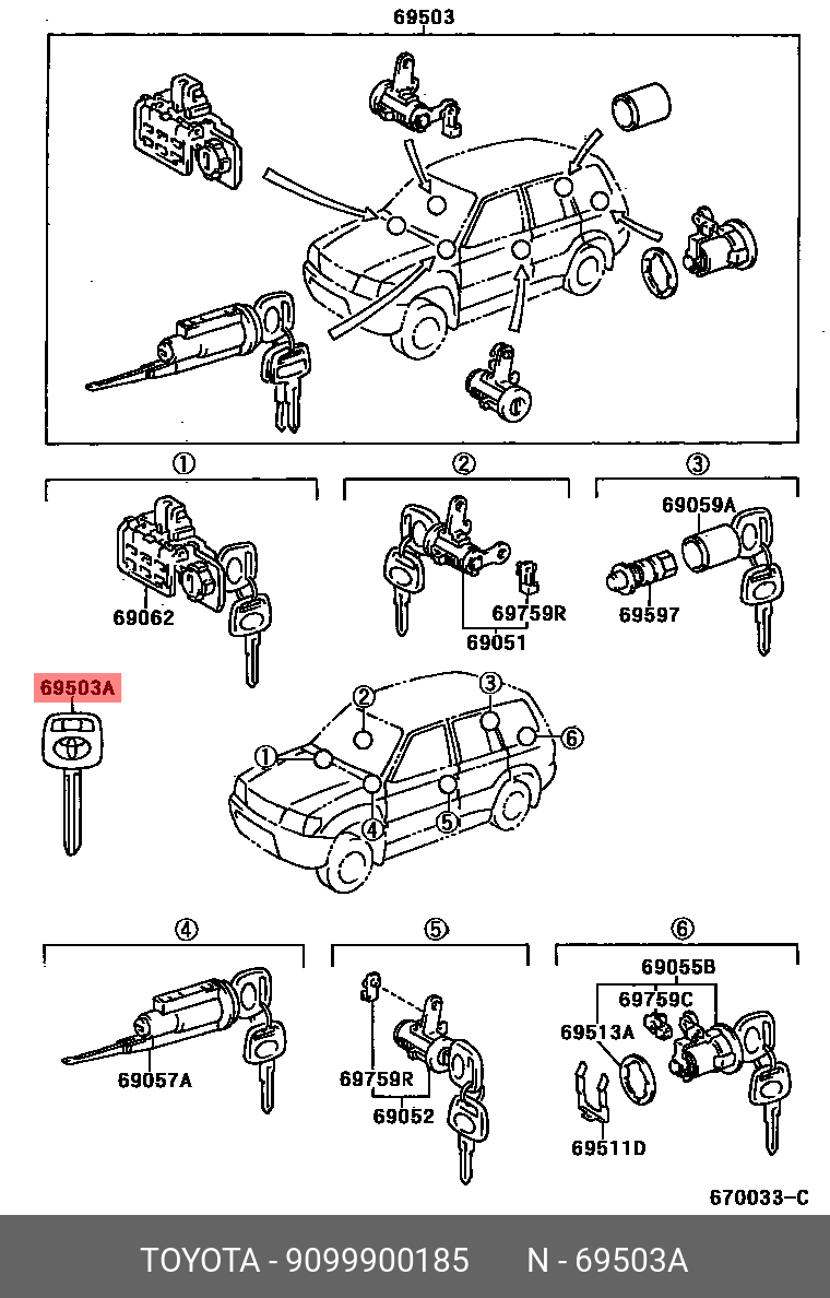 90999-00185 TOYOTA ключ замка зажигания заготовка!\ Toyota Corolla/ Prado
