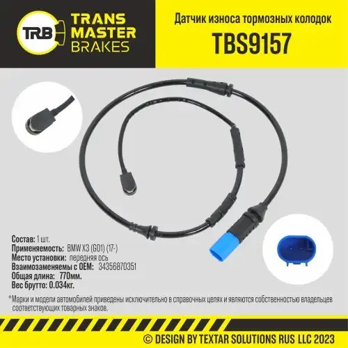 TBS9157 TRANSMASTER Датчик износа тормозных колодок BMW X3 (G01) передний TRANSMASTER
