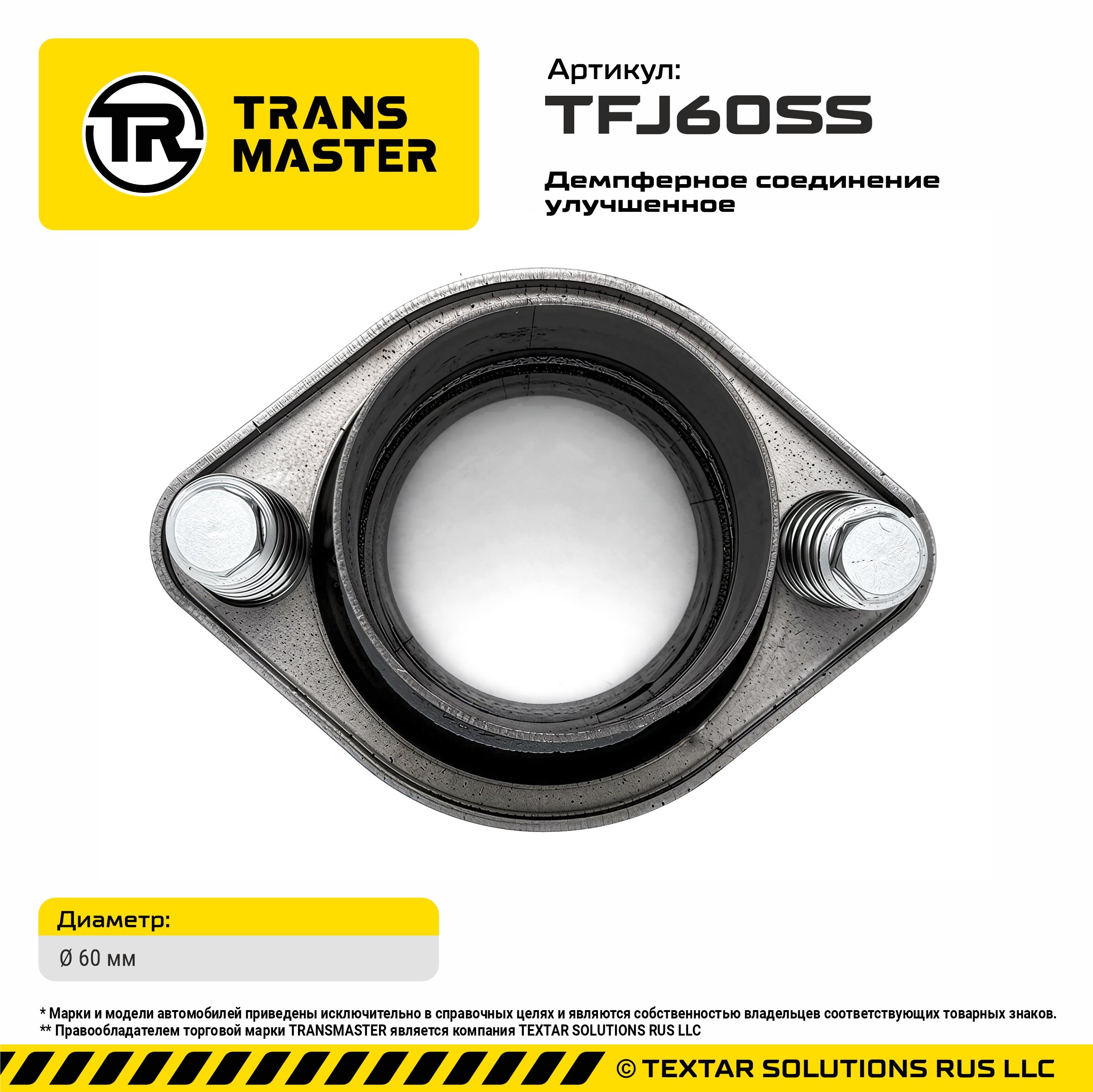 TFJ60SS TRANSMASTER Фланец трубы глушителя d=60мм (кольцо,комплект крепежа,патрубки) ромб демпфер не