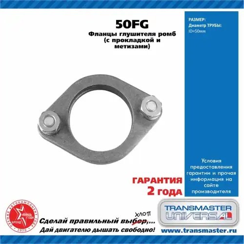 50FG TRANSMASTER Фланец выхлопной системы d=50мм 2шт. (прокладка,комплект крепежа) ромб TRANSMAST