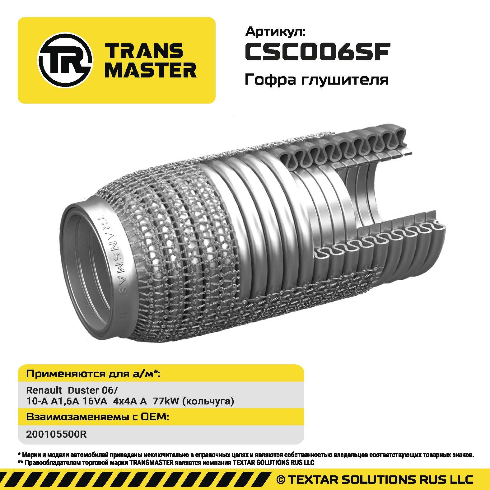 CSC006SF TRANSMASTER Гофра глушителя Renault Duster 06/10-A A1,6A 16VA 4x4A A 77kW (кольчуга) (кольчу