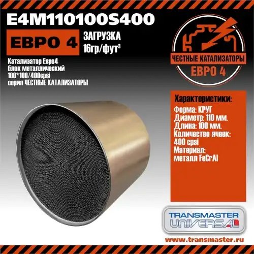 E4M110100S400 TRANSMASTER Катализатор круглый блок металлический (FeCrAl) d=110мм L=100мм cpsi=400 ЕВРО-4