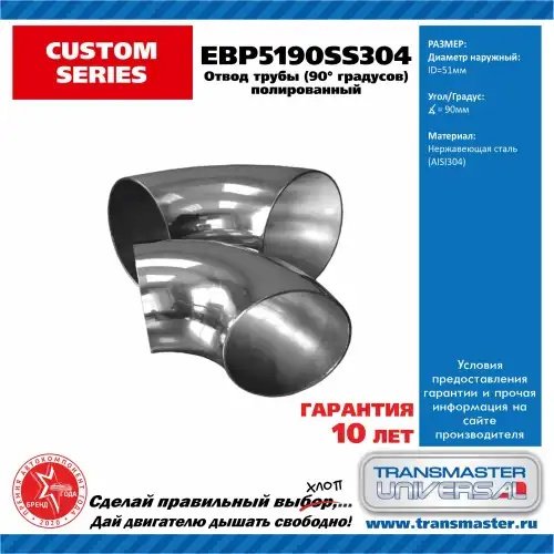 EBP5190SS304 TRANSMASTER Труба-вставка выхлопной системы (внеш.d=51мм,изгиб 90 град.) изогнутая нерж.стал