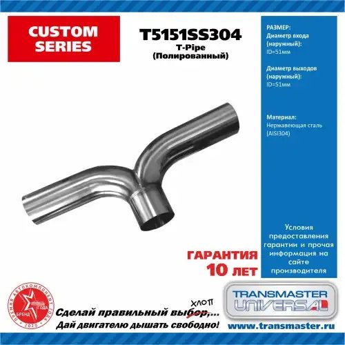 T5151SS304 TRANSMASTER Труба соединительная выхлопной системы T-пайп d1=51мм d2=51мм нержавеющая сталь