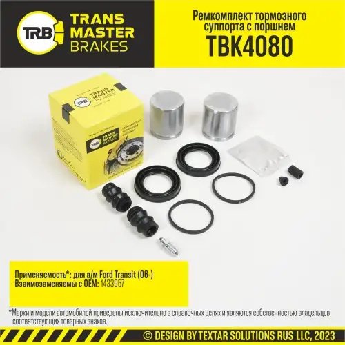 TBK4080 TRANSMASTER Ремкомплект тормозного суппорта с поршнем, FORD TRANSIT 06-, задняя ось, d.48 мм