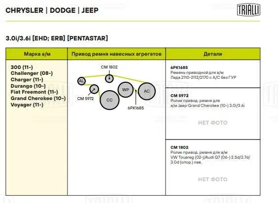 CM 1802 TRIALLI Ролик генер. VW Touareg (04-)/Audi Q7 (06-) 3.0 TDI CM1802