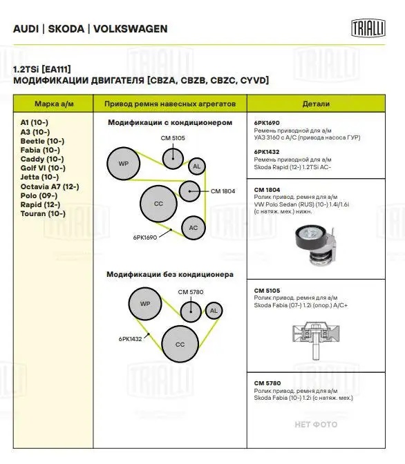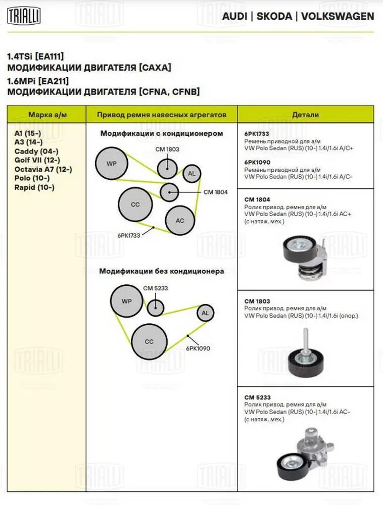 CM 1804 TRIALLI Ролик генер. с натяж. мех. Skoda Rapid (12-) CM1804
