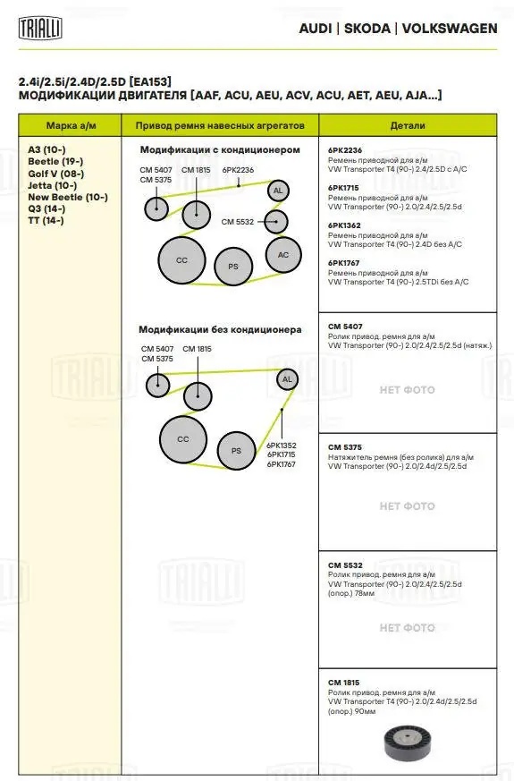 CM 1815 TRIALLI Ролик приводного ремня опорный 90 мм