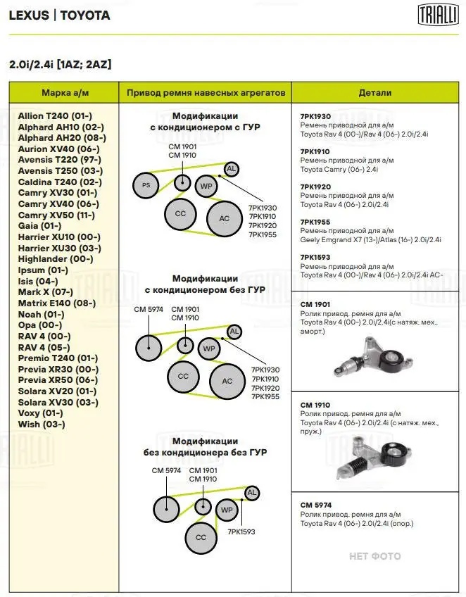CM 1901 TRIALLI Ролик привод. ремня Toyota RAV4 (00-) 2.0i/2.4i [AZ] (с натяж. мех.,гидравл.) (C