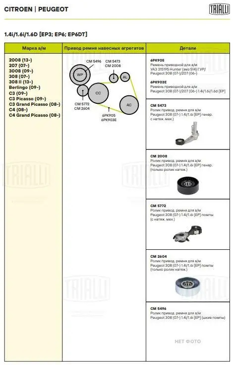 | Наименование | Ролик приводного ремня PEUGEOT 308 (08-) (1.4/1.6) генератора TRIALLI |