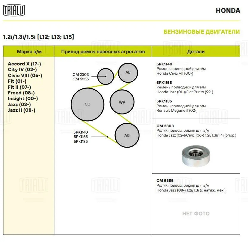 CM 2303 TRIALLI Ролик привод. ремня Honda Jazz (02-)/Civic (06-) 1.2i/1.3i [L12; L13; L15] (опор