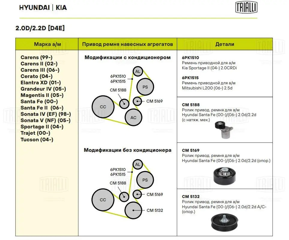 CM 5188 TRIALLI Ролик привод. ремня Hyundai Santa Fe (00-)/(06-) 2.0d/2.2d (с натяж. мех.) (CM 5