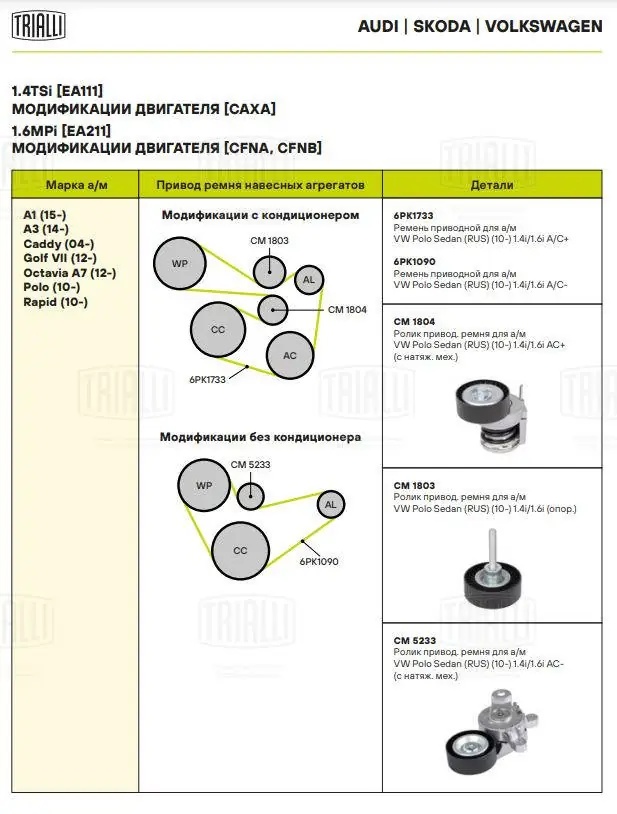 CM 5233 TRIALLI ролик ГРМ с механизмом натяжения!\ VW Polo Sedan 1.4i 10>