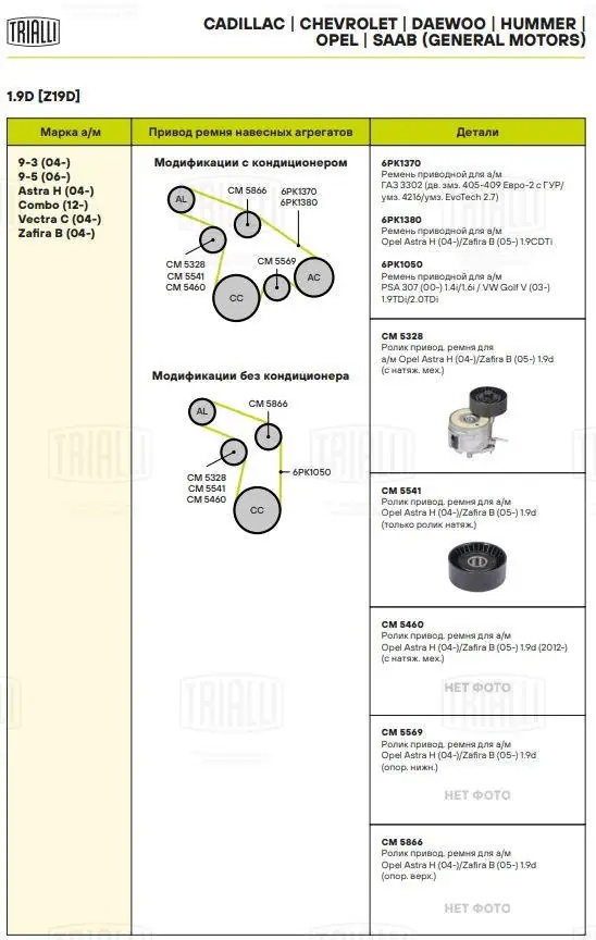 CM 5328 TRIALLI Ролик привод. ремня Opel Astra H (04-)/Zafira B (05-) 1.9d (-2012) (с натяж. мех