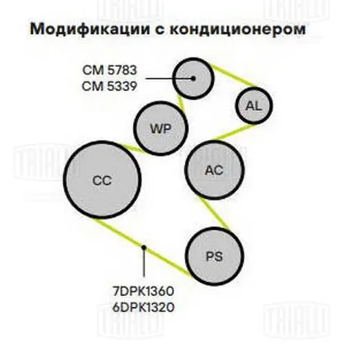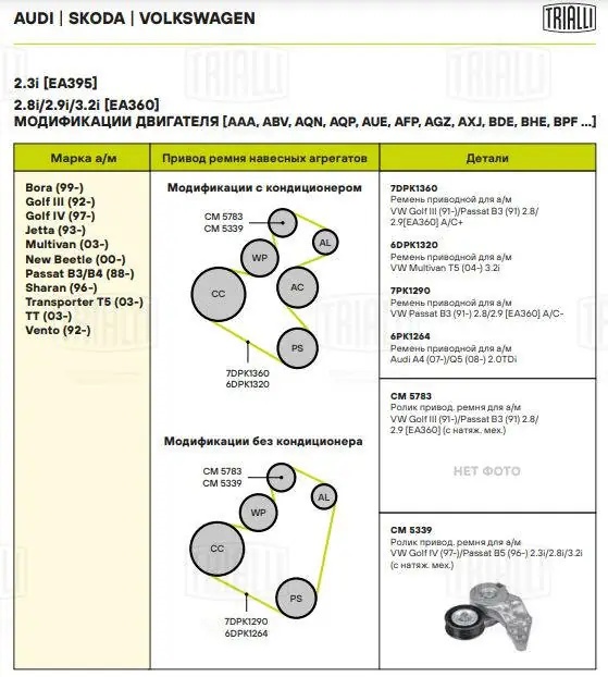 CM5339 TRIALLI Ролик привод. ремня VW Golf IV (97-)/Passat B5 (96-) 2.3i/2.8i/3.2i (с натяж. ме