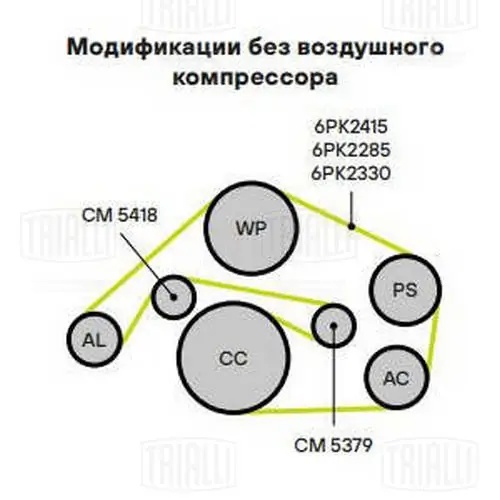 CM5379 TRIALLI Ролик привод. ремня Audi A6 (04-) 2.4MPi/2.8FSi/3.0TFSi/3.2FSi [EA837] (с натяж.