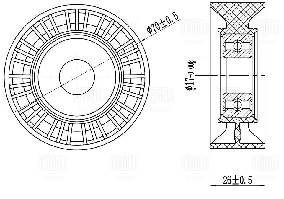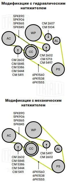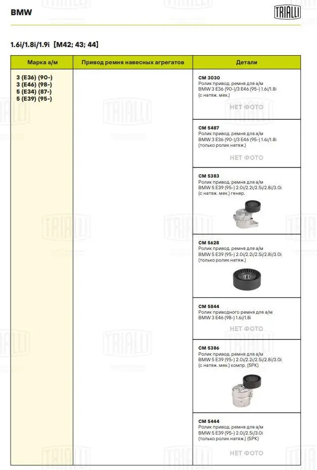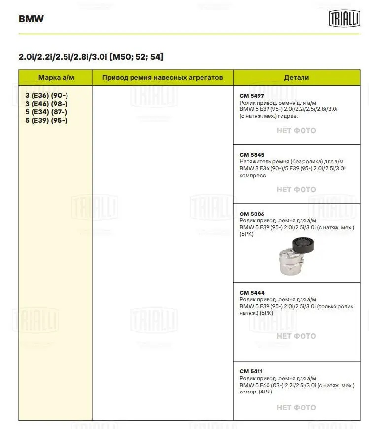 CM 5444 TRIALLI Ролик привод. ремня для а/м BMW 5 E39 95- 2.0i/2.5i/3.0i только ролик натяж. 5PK