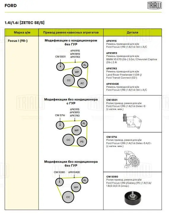 CM5501 TRIALLI Ролик привод. ремня Ford Focus I (98-) 1.4i/1.6i Zetec-S (с натяж. мех.) (CM 550