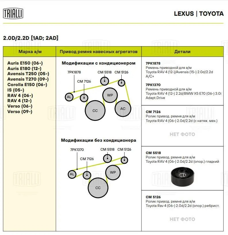 CM 5518 TRIALLI Ролик привод. ремня Toyota RAV4 (06-) 2.0d/2.2d [AD] (опор.) гладкий (CM 5518)