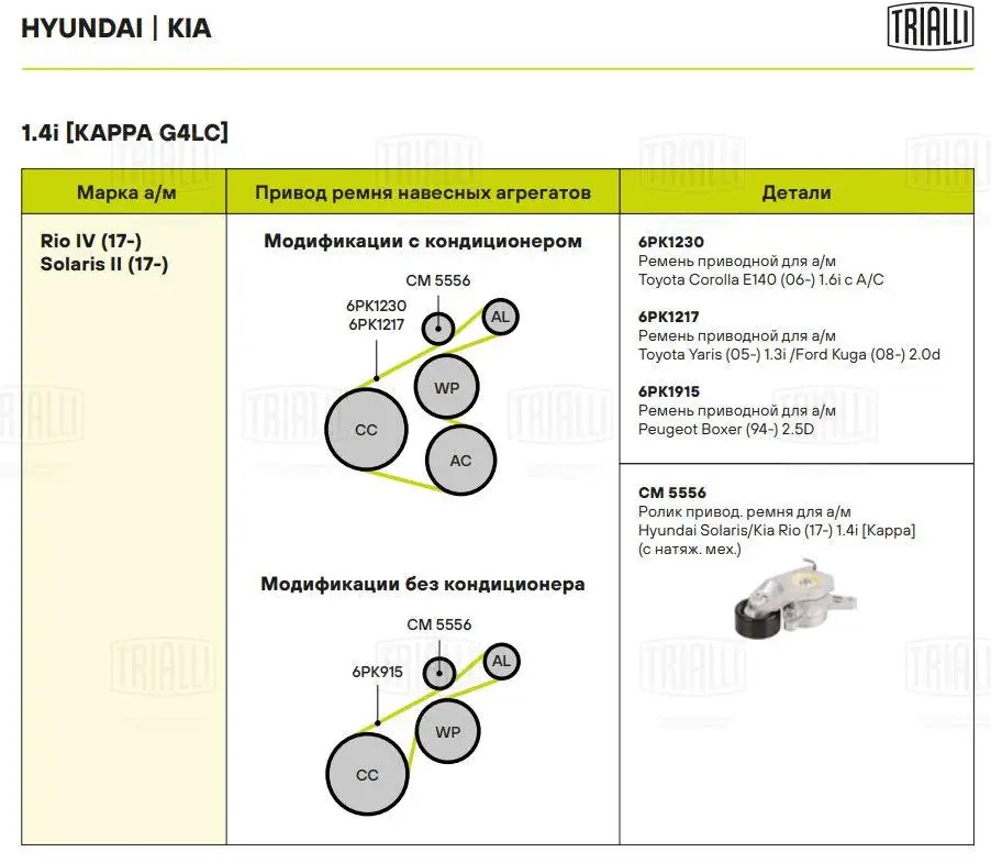 CM5556 TRIALLI Ролик привод. ремня для а/м Hyundai Solaris/Kia Rio (17-) 1.4i [Kappa] (с натяж.