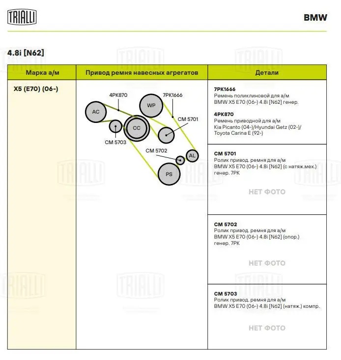 CM 5703 TRIALLI CM 5703 Ролик привод. ремня для а/м BMW X5 E70 (07-) 4.8i (N62) (натяж.) компр.