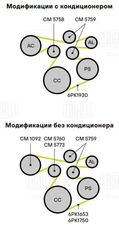 CM5759 TRIALLI Ролик ГАЗ-31105 дв.Крайслер обводной TRIALLI